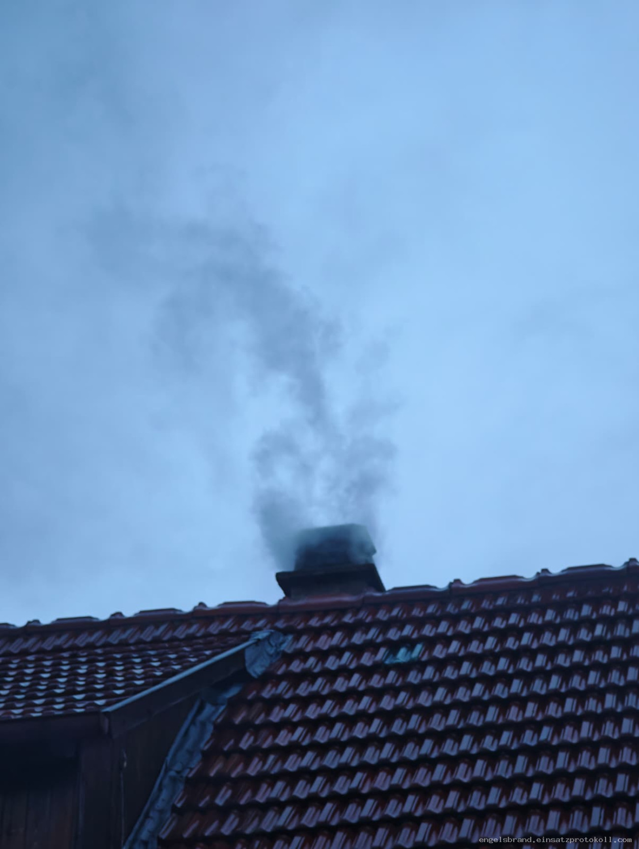 Beim Eintreffen stellten wir einen stark rauchenden Kamin fest. Der Kamin wurde von außen sowie im Gebäudeinneren mit der Wärmebildkamera kontrolliert. Dabei konnten wir keine erhöhte Temperatur und keine Anzeichen einer Brandentwicklung feststellen.